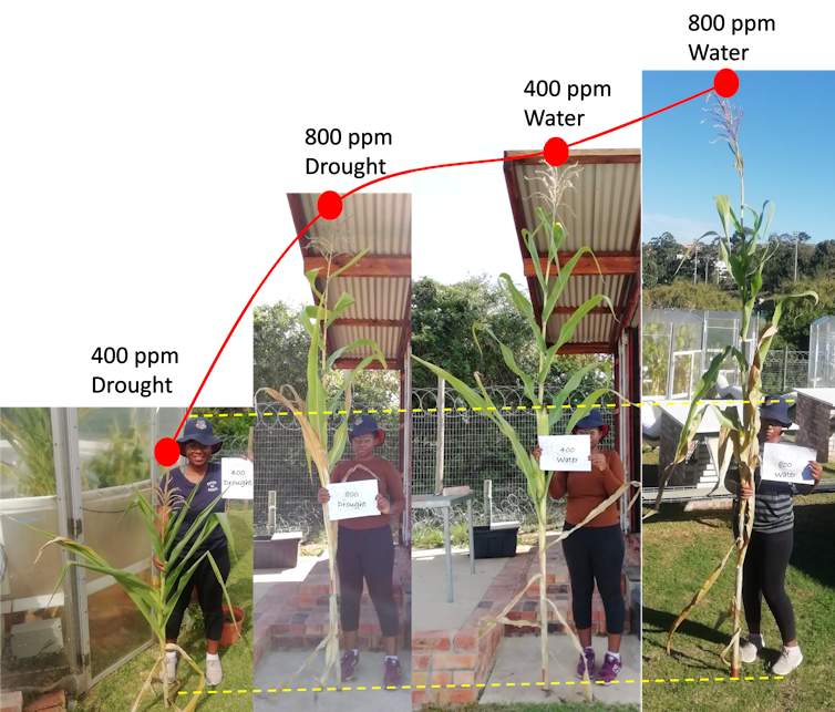 We set out to address this knowledge gap. Through a series of experiments conducted in South Africa’s Eastern Cape province, we found that future atmospheric CO₂ concentrations are likely to benefit maize production in tropical growing regions like those found in many parts of Africa. This may extend the future land area available to rainfed maize cultivation by making maize production more water use efficient.