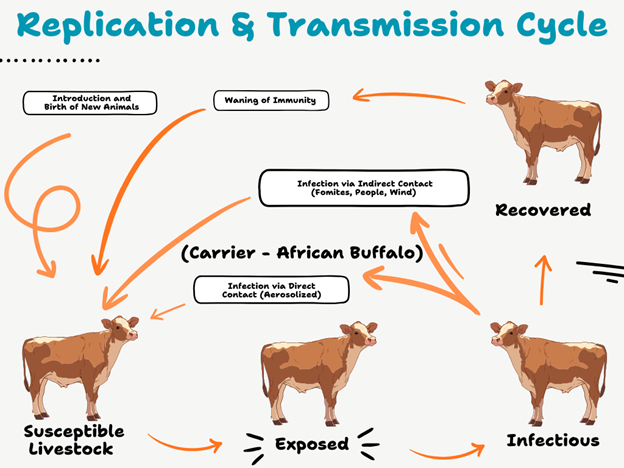 Figure 1: Transmission cycle of Foot-and-Mouth Disease (FMD)