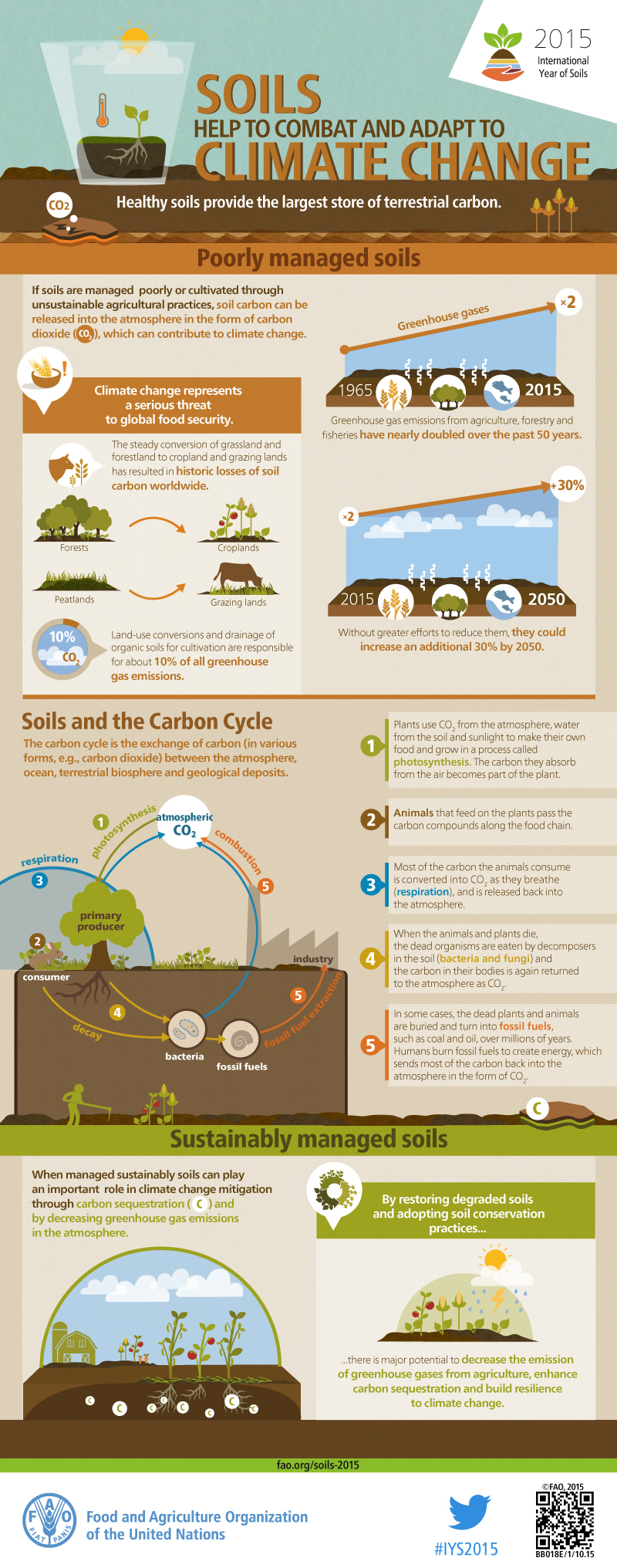Organic matter in soil, such as decomposing plant and animal residues, stores more carbon than do plants and the atmosphere combined. Unfortunately, the carbon in soil has been widely lost or degraded through land use changes and unsustainable forest and agricultural practices, fires, nitrogen deposition and other human activities. The greatest near-term threat comes from thawing permafrost in Earth’s northern reaches, which could release massive amounts of carbon into the atmosphere.