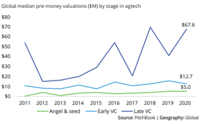 These kind of ventures in agriculture struggle to attract PE investment, commercial debt funding or other funding, as they have a limited track record, a short horizon of invoices to finance against and applications are not widely adopted. VC takes a view on these constraints and concludes that investing in certain early phase companies is worth the risk.