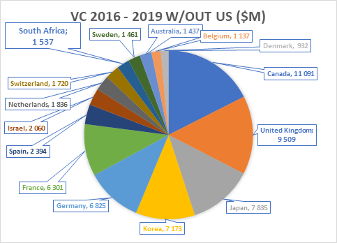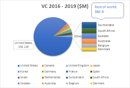 From data available on all OECD (Organisation for Economic Co-operation and Development) countries, the US ranks first in VC investments (total VC, not only in AgTech), with $436 billion between 2016 and 2019. South Africa ranks 12th, with $1.2 billion over the same period.
