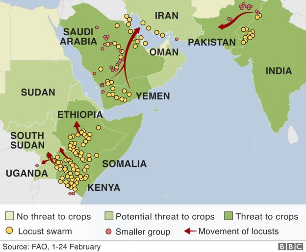 Massive swarms of locusts are sweeping across South Asia, the Middle East and the Horn of Africa. The current outbreak is the worst in recent decades.